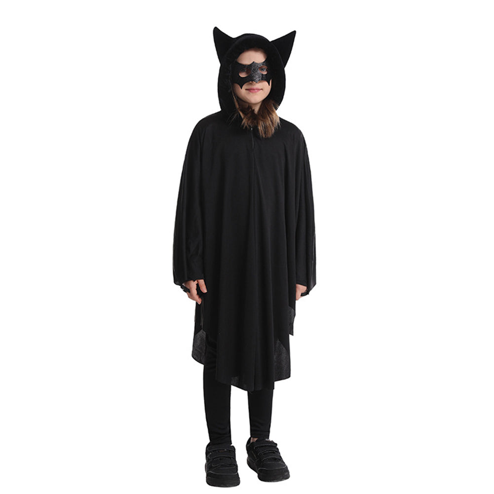 - Design: Integrated hood with cat – ear accents, wide wing – like extensions with gray scalloped edges that mimic bat wings, and a matching black mask with bat/cat face design.