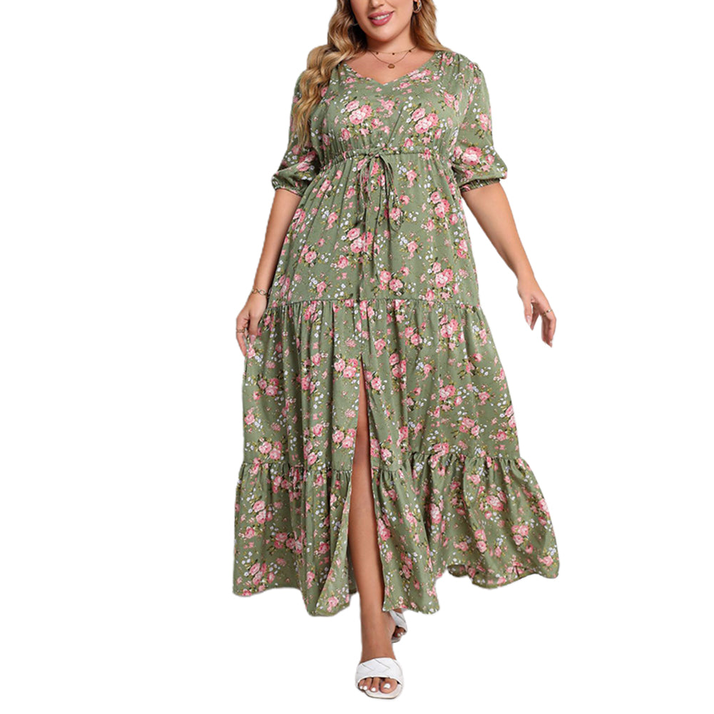 Step into the world of summer charm with this stunning maxi dress. The beautiful sage green base adorned with pink floral blooms and white accents creates a captivating visual. Its loose, flowy design is perfect for plus – size women, offering both comfort and style.