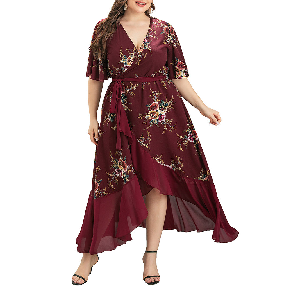 - Fit: Plus – size friendly wrap – style fit that flatters the waist and flares into an A – line silhouette.