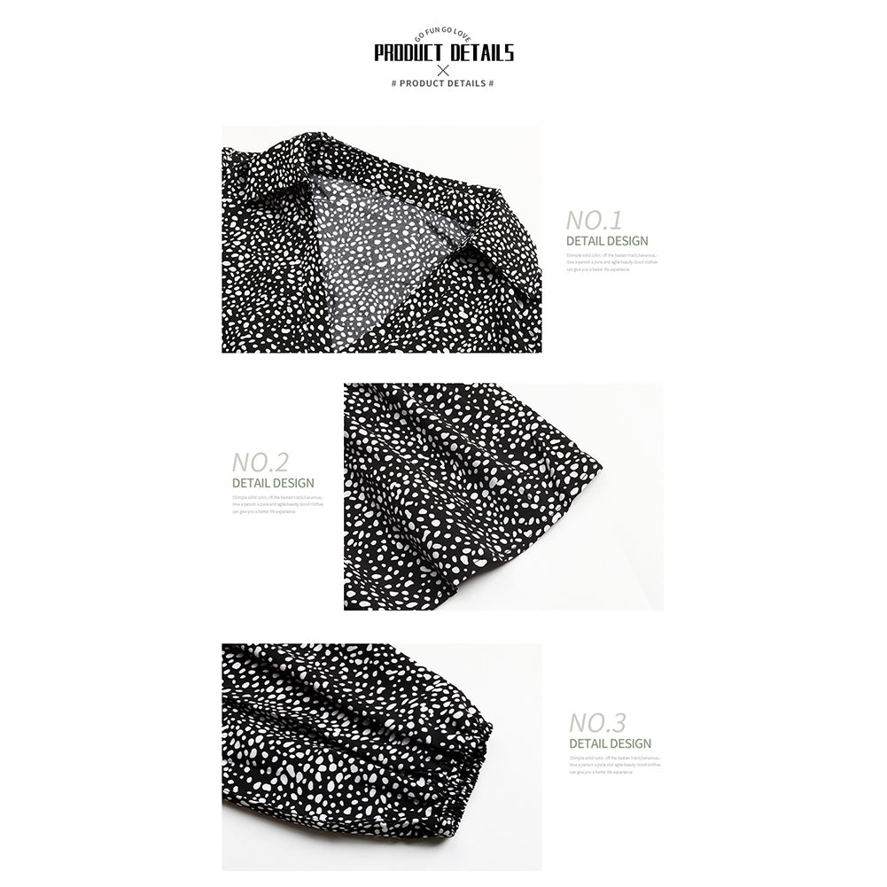 Step out in style with this charming black-and-white spotted shirt dress. It combines the classic elements of a shirt, like a collared neckline and button – front placket, with the femininity of a flared ruffled skirt. The lightweight fabric ensures comfort throughout the day.